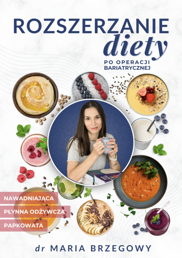 A jeśli chcesz dowiedzieć się znacznie więcej na temat prawidłowego odżywania po operacji i mieć wszystko w jednym miejscu, zajrzyj do moich e-booków – zwłaszcza do kompleksowego poradnika „Rozszerzanie diety po operacji bariatrycznej. Znajdziesz tam konkretne wskazówki, przejrzyście przedstawione w formie tabel i grafik, przykładowe przepisy oraz karty pracy, które pomogą Ci przejść przez ten proces z większym spokojem i poczuciem kontroli.
