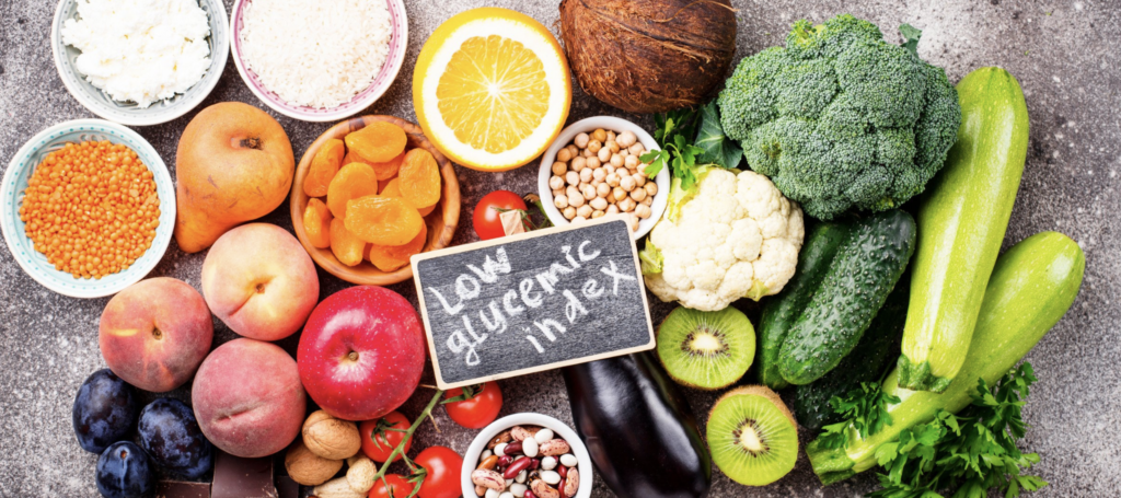 • Wybór produktów o niskim indeksie glikemicznym np. pełnoziarniste produkty zbożowe, surowe warzywa, rośliny strączkowe, orzechy.